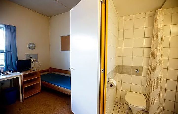以布雷维克为例,他被关到了泰利马克监狱,在里面分配到了一套专属的「三居室」,一个卧室,一个健身室,一个书房,还带独立卫生间。