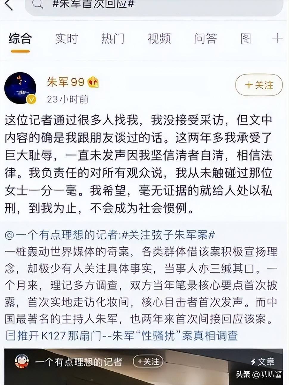一时间,铺天盖地的骂名扑向了朱军,“色狼”“伪君子”的标签全都贴到了他的身上。