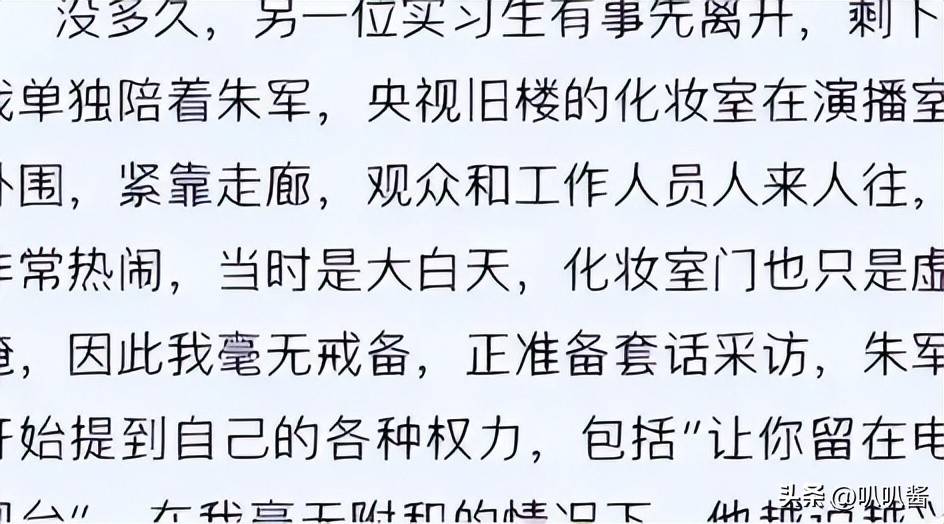 当年的事情结束之后,她拒绝帮助朱军澄清、以及赔偿;反而坚定自己没有说话,所说的话句句属实。