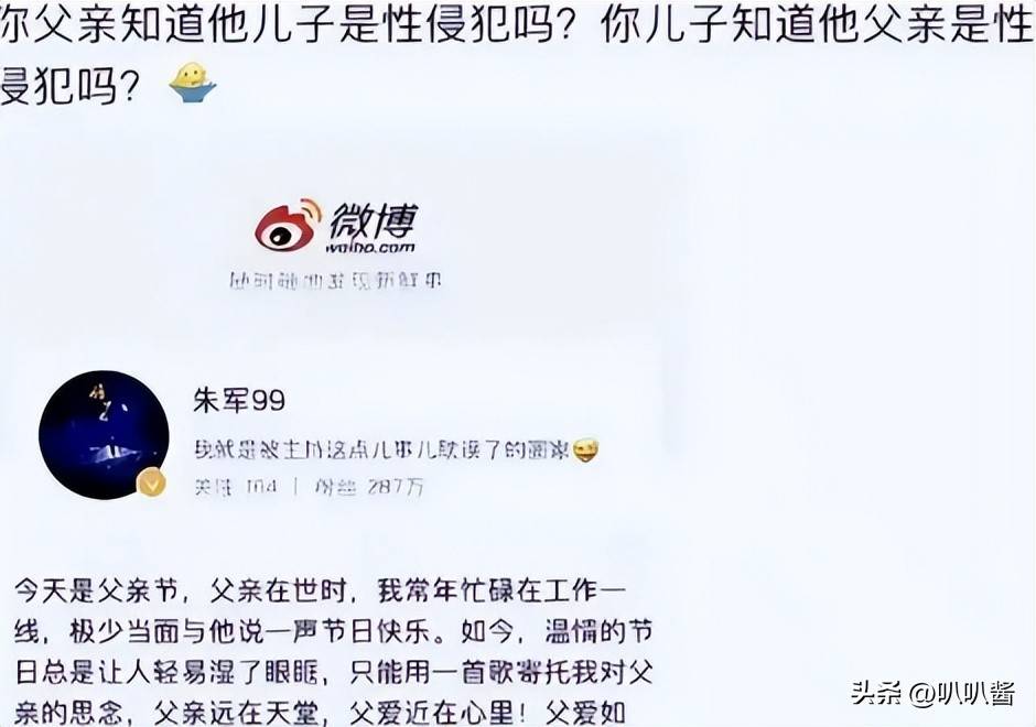 连同“受害”的,还有朱军的爱人和孩子,不少网友对着他妻子喊话,直言让她“管好朱军”;他的孩子在学校里也被人指着脊梁骨骂,