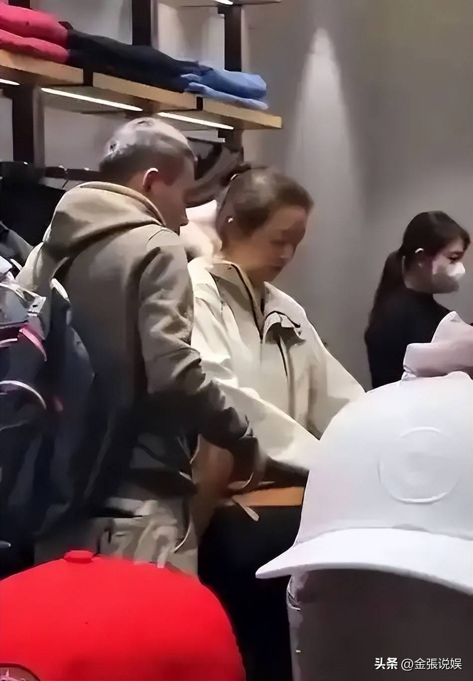 工作人员注意到有个穿着深绿色外套的男人走进了化妆间,正是她的丈夫田小洁。