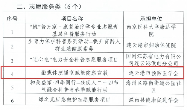 近日,连云港市科学技术协会公布了2026年度科普项目立项名单,连云港市预防医学会健康促进与教育专委会申报的《融媒体演播室赋能健康宣教》项目经过评审,成功入选。这标志着健康科普工作迈入了系统化、项目化发展的新阶段。